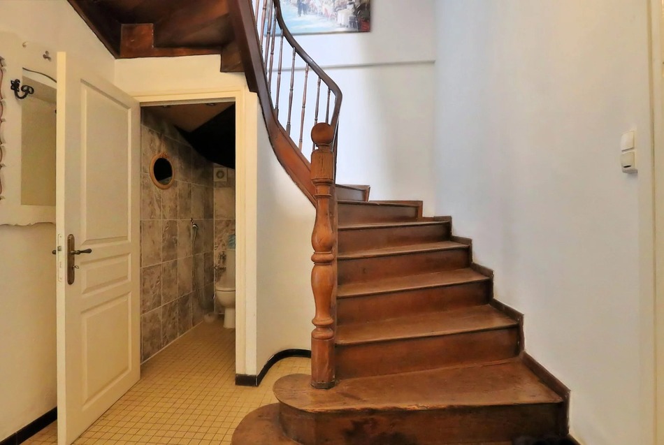Hall d’entrée avec un magnifique escalier d’époque desservant les deux étages, offrant une véritable touche de caractère.