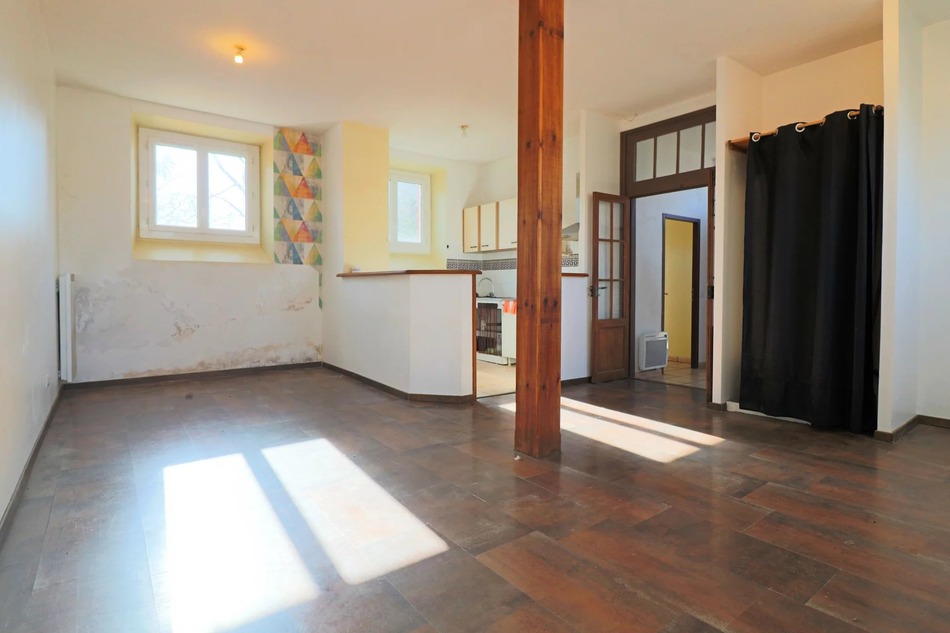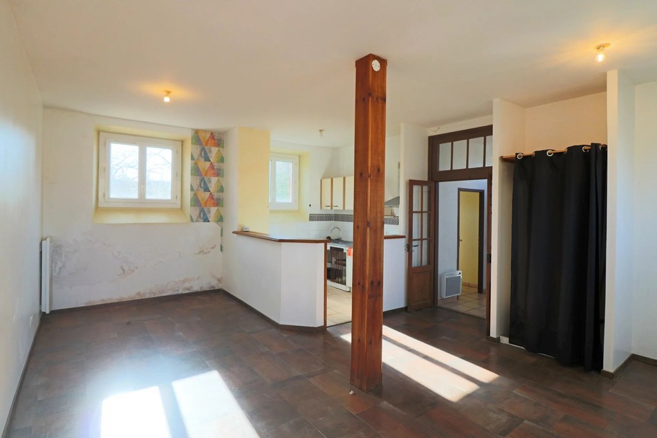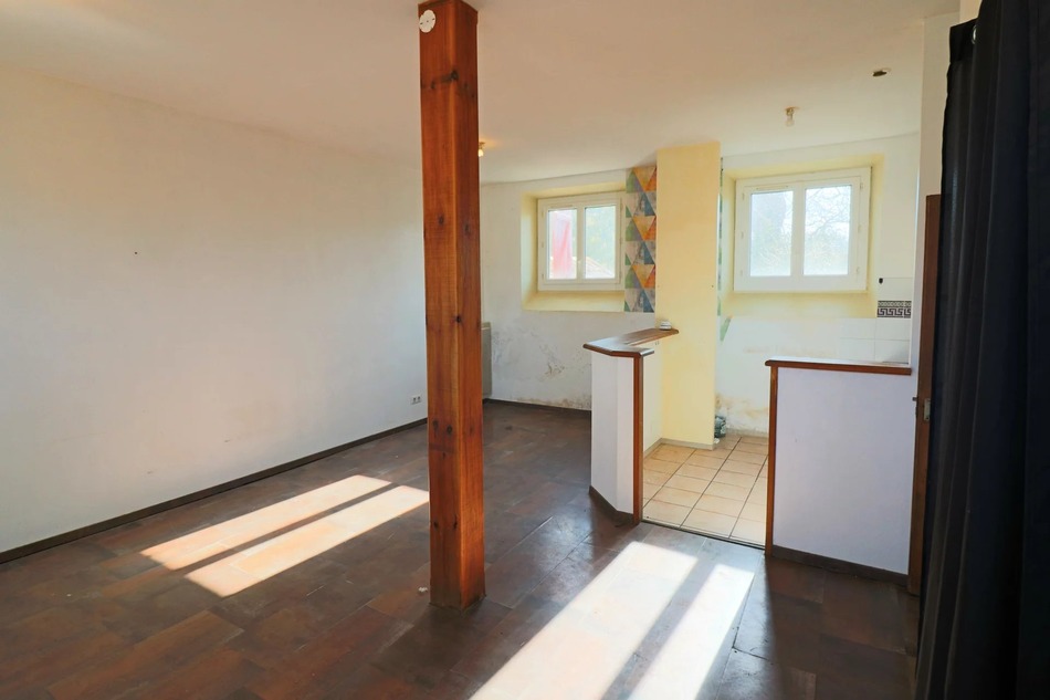 Maison (105m²) comprenant 3 chambres. sur 886m² de terrain EXCLUSIVITE: Maison de village d'environ 105m² comprenant 3 chambres sur un terrain de 886m². REZ-DE-CHAUSSEE: . Hall d'entrée (3.8m²) . Salon/cuisine (31.5m²) . Salle d'eau (4.6m²) . WC ETAGE: . Palier/dégagement . 2 chambres (9.6m² et 12.7m²) . Chambre d'enfant/bureau (8m²) . Bureau (4.5m²) GRENIER/salle de jeux (30.6m²)