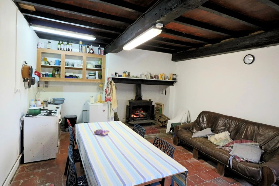 . Cuisine/salle à manger (22,4m²) avec cheminée et poêle à bois