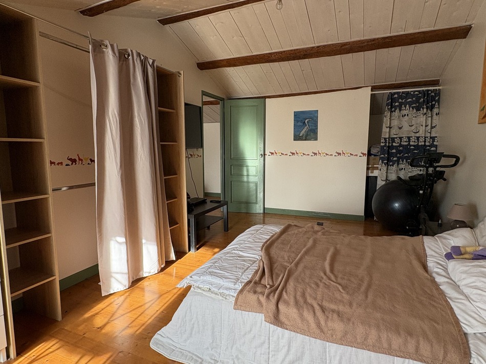 À l'étage : Deux grandes chambres, un WC séparé, une mezzanine, parfaite pour un coin bureau.