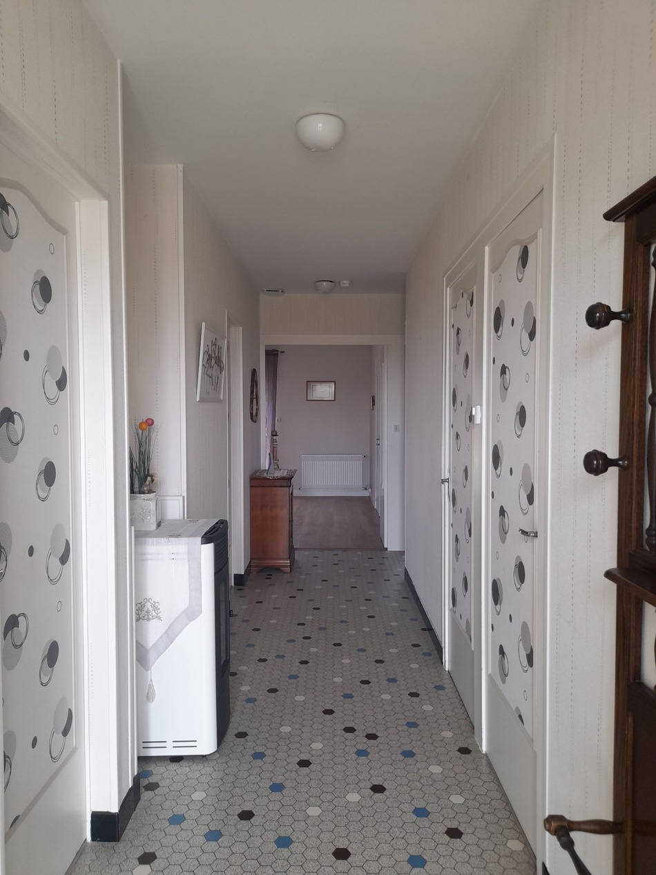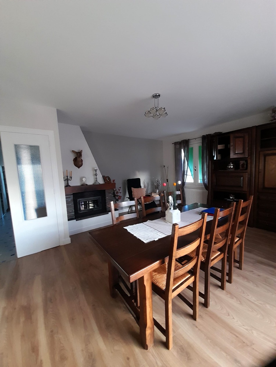 Entrée avec poêle à granulés desservant 3 chambres avec rangement, une salle d'eau, Salon/séjour(27m²) avec insert dans cheminée pouvant être ouvert avec la cuisine (13m²), WC, une chaufferie avec galetas et une cuisine d'été .