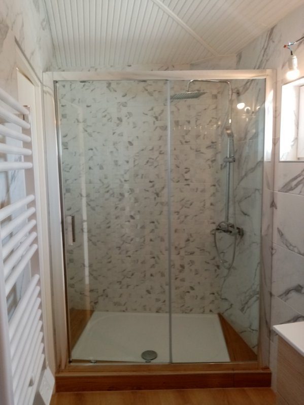 A l'étage, 2 chambres, une salle d'eau(communiquante avec les 2 chambres) , WC indépendant, espace bureau,