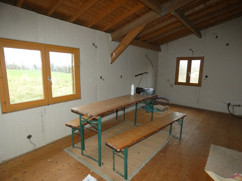 Maison mitoyenne à rénover comprenant : 1 pièce principale av. cheminée, 3 pièces (25, 26, 24 m²) Grenier, (électricité, prévoir réseau d'eau, puits) Terrain 1 500 m² (9.43 % fees incl. VAT at the buyer's expense.)