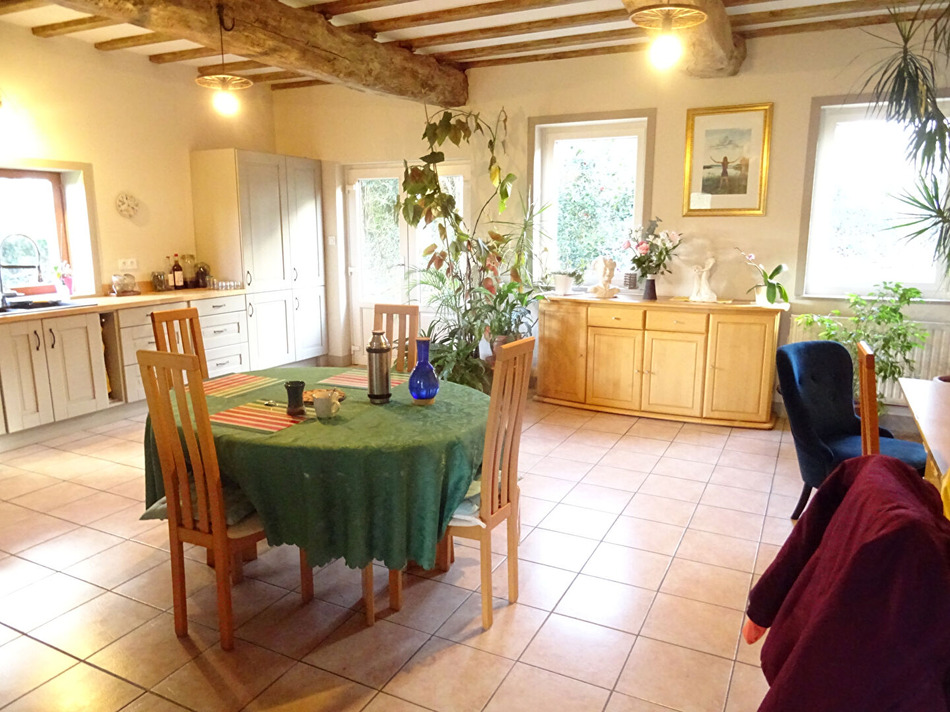 Maison de campagne, au calme, divisée en 2 logements, comprenant : Première partie Au rdc : cuisine, séjour avec cuisinière à bois et poêle à bois A l'étage : palier, 2 chambres, salle d'eau avec wc Deuxième partie : Au rdc : grande pièce de vie av cuisine aménagée/équipée et poêle à bois, arrière cuisine, chaufferie-buanderie, wc A l'étage : une grande chambre, salle d'eau avec wc 2 grandes dépendances Garage et atelier Ancien four à pain Cour, terrain et bois, le tout sur 2,45 ha environ, bordé par un ruisseau Voisinage le plus proche situé à 200m Idéal pour une activité de gîte Fosse toutes eaux, puits artésien, Toiture rénovée, isolation avec des matériaux naturels Les informations sur les risques auxquels ce bien est exposé sont disponibles sur le site Géorisques : www.georisques.gouv.fr (5.49 % honoraires TTC à la charge de l'acquéreur.)