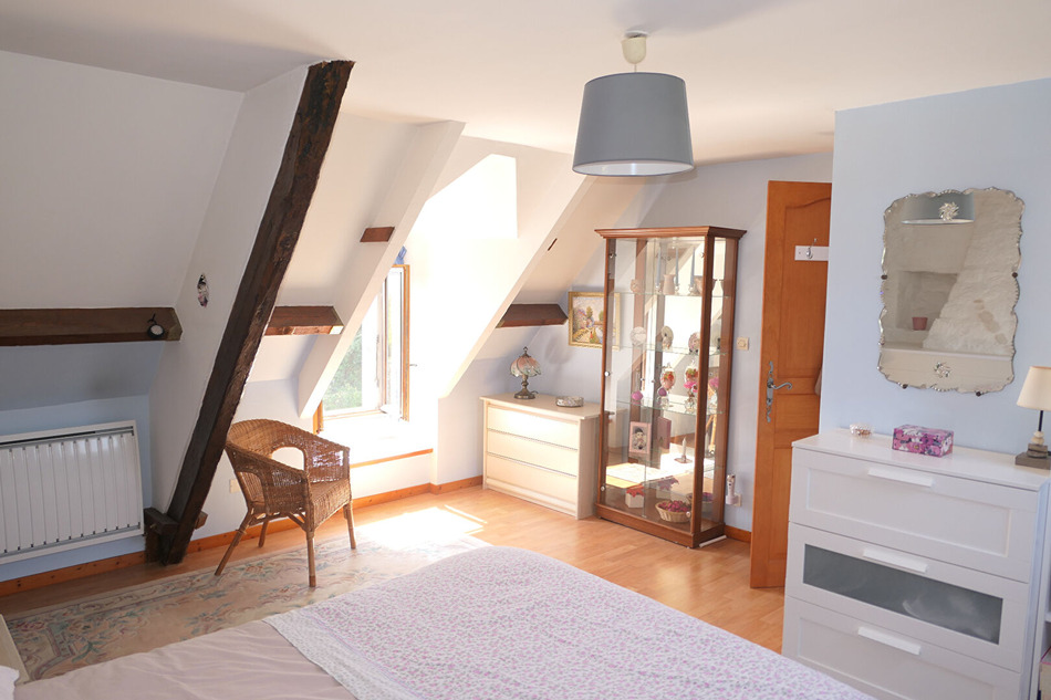 House located in a quiet environment with: Ground floor: entrance, kitchen, living room with fireplace (wood stove), toilet 1st: two bedrooms, office, bathroom-wc Adjoining cottage with a main room (stove wood), a bedroom, bathroom-wc Courtyard and garden, all on 2138sqm (6.84 % fees incl. VAT at the buyer's expense.)