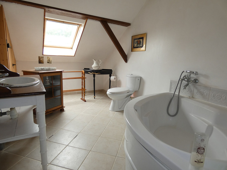 Longère (SH : 330 m² env.) comprenant, possibilité de diviser en 2 : Au rdc : entrée-salon, cuisine aménagée/équipée avec coin repas, salle à manger, 2 chambres, salle d'eau-wc, buanderie, chaufferie A l'étage : palier, 3 chambres en suite (1 avec sde-wc et dressing ,1 avec cabinet de toilettes et dressing et 1 avec sdb-wc), bureau, sdb-wc Au 2ème étage ; palier, 1 chambre avec sde-wc Dépendances, cour et terrain clos, le tout sur 3410 m² Les informations sur les risques auxquels ce bien est exposé sont disponibles sur le site Géorisques : www.georisques.gouv.fr - (5.59 % honoraires TTC à la charge de l'acquéreur.)