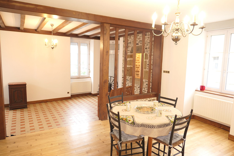 Maison de bourg (SH : 112 m² env) comprenant : Au rdc : cuisine aménagée ouverte sur séjour avec cheminée - salon, arrière cuisine, wc A l'étage : dégagement, 2 chambres, salle de bain avec wc Au 2ème étage: 1 grande chambre Chauffage électrique - Menuiseries PVC avec volets roulants - Tout à l'égout Les informations sur les risques auxquels ce bien est exposé sont disponibles sur le site Géorisques : www.georisques.gouv.fr (8.27 % honoraires TTC à la charge de l'acquéreur.)