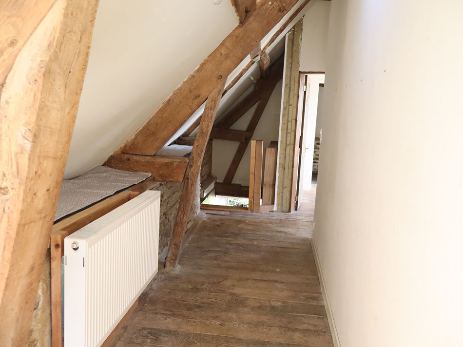 Maison de campagne comprenant Au rdc : cuisine aménagée avec cheminée (poêle à bois), séjour avec cheminée (insert), dégagement, une chambre, salle d'eau avec wc A l'étage : couloir, deux chambres dont une avec cabinet de toilette, salle de bain - wc Garage attenant Dépendance comprenant garage, étable et appentis Poulailler et bergerie Cour et terrain, le tout sur 2812 m² (7.44 % honoraires TTC à la charge de l'acquéreur.)