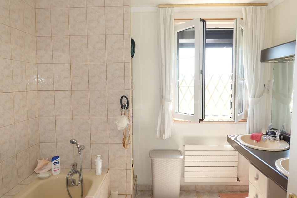 A l'étage : palier, 2 chambres dont 1 avec placard, salle de bains-wc