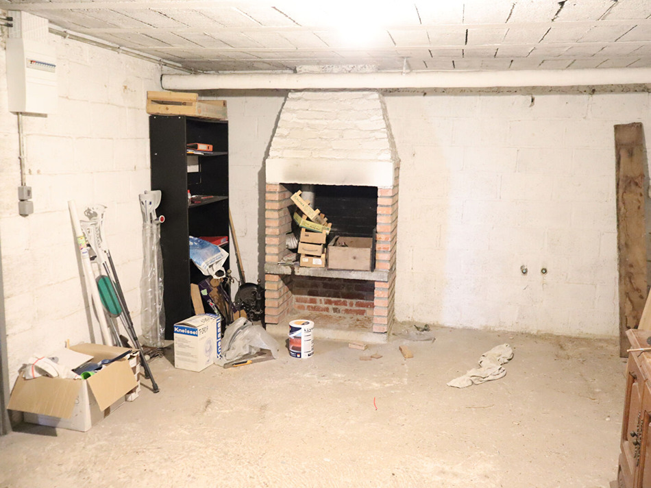 Proche commerces, maison comprenant au rez-de-jardin : entrée, cuisine, séjour avec cheminée, wc avec lave-mains, trois chambres, bureau, couloir avec placards, salle de bain avec wc Au rez-de-chaussée : garage, une pièce avec cheminée, buanderie/chaufferie, cave Cour et jardin, le tout sur 940 m² Chauffage Central fuel (2003) - Huisseries PVC avec volets roulants électriques - Tout à l'égout - Fibre raccordée (7.38 % honoraires TTC à la charge de l'acquéreur.)