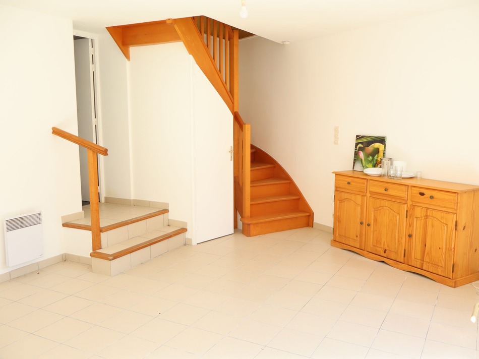Seconde maison comprenant : Au rdc : entrée av. placard, cuisine-séjour, buanderie., wc av. lave-mains A l'étage : palier, 2 chambres avec placard, salle de bains. Courette,
