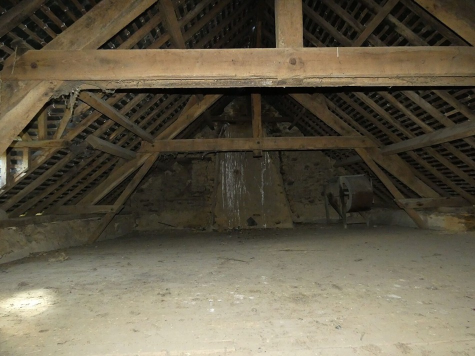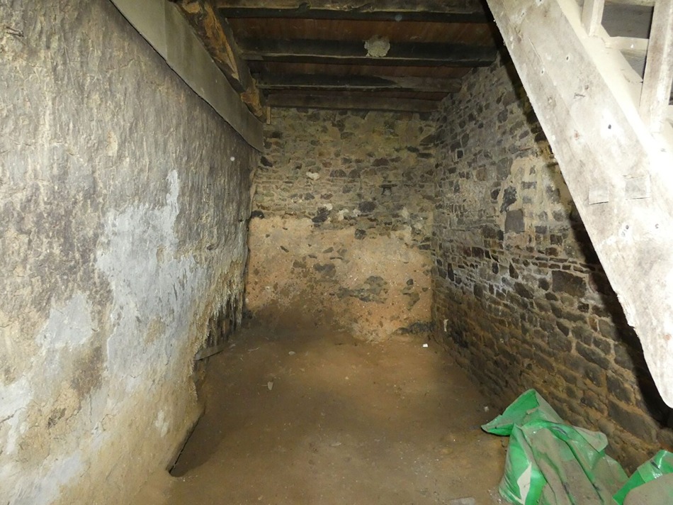 -Une pièce principale avec conduit de cheminée, une cave, une ancienne étable, une grange.
