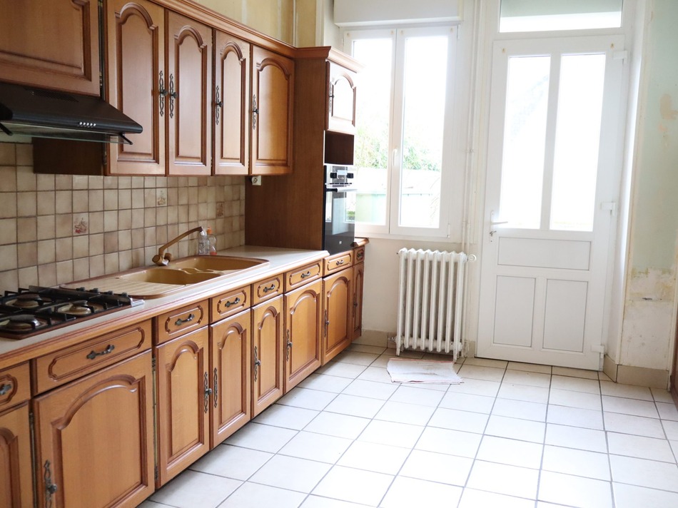Au RDC : entrée, cuisine aménagée, séjour, arrière cuisine, chaufferie, douche et wc