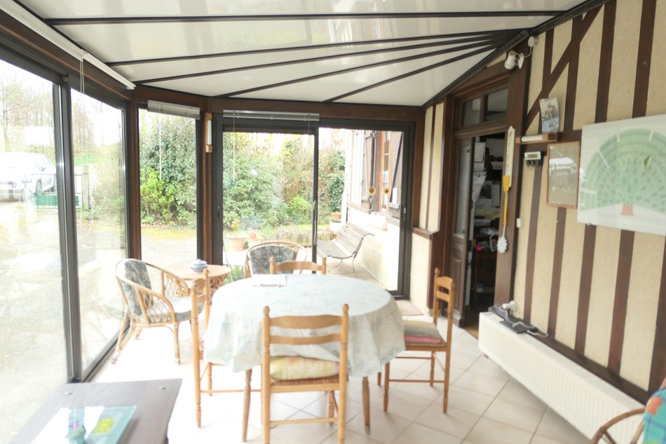Au RDC: pièce de vie avec cheminée, véranda, une chambre avec rangement, salle de bain et wc.