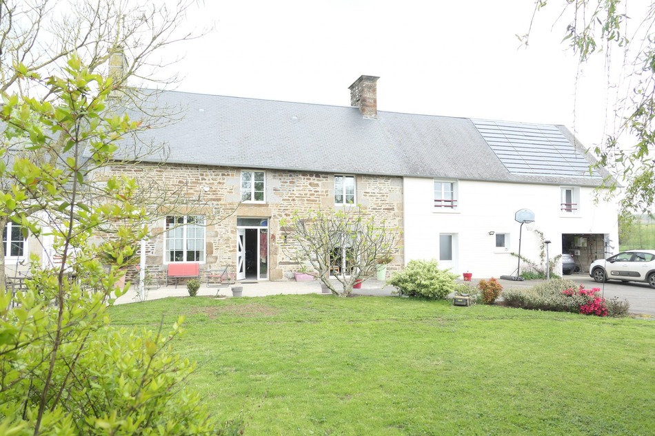 -Au rez-de-chaussée : cuisine aménagée ouverte sur séjour-salon avec poêle à bois, couloir avec placard, salle d'eau-buanderie, wc avec lave-mains, cave attenante avec grenier.