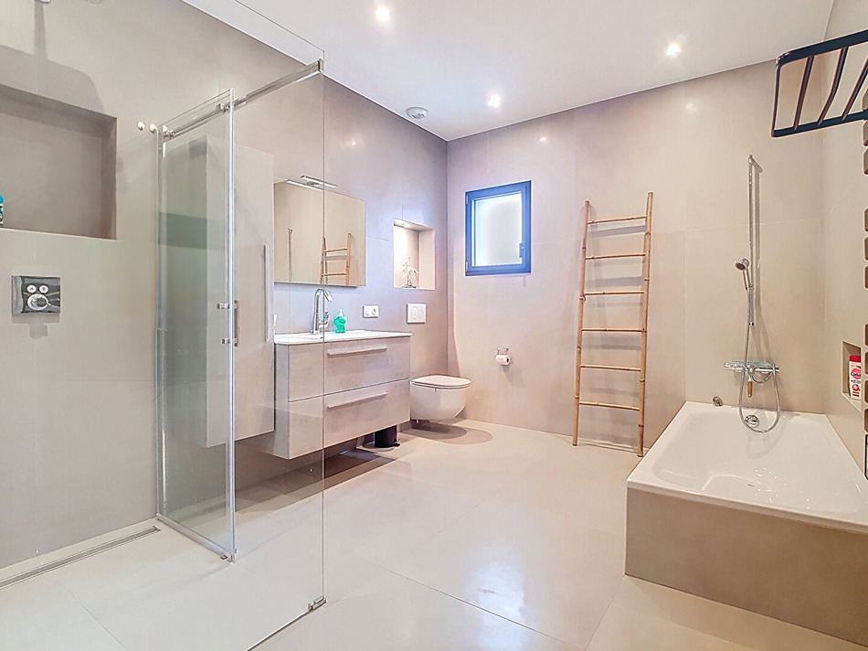In Lully, discover a modern and welcoming house, built in 2022, offering 200 sqm of living space on a 614 sqm plot. Upon entering, a spacious hall welcomes you with ample storage, a guest WC, and direct access to the 40 sqm double garage, equipped with an automatic door. Continuing on, you enter the living area: a bright and open-plan 66 sqm living room and kitchen, ideal for family gatherings. The fully equipped kitchen features a large central island with a cooktop and opens onto the terrace. Upstairs, the sleeping area is designed for comfort and privacy. Here you will find four bedrooms, including a suite with an en-suite shower room, as well as a 36 sqm master bedroom with a dressing room and ensuite bathroom. A laundry room, which could also serve as a fifth bedroom, and an additional bathroom with a shower and WC complete this floor. Outside, the 614 sqm plot offers a large terrace, a pleasant garden, and a secure 4x8 m saltwater swimming pool, perfect for enjoying sunny days. This recently built, warm, and functional house is located in a quiet and sought-after area. It boasts an A-rated energy performance certificate (DPE) and is equipped with the latest technology: dual-zone underfloor heating on both the ground and first floors via a heat pump, reversible air conditioning, and home automation. A true modern haven, designed for peaceful living in all seasons. Ideally situated just 2.5 km from Perrignier train station and the future A412 interchange, the house will offer easy access to Switzerland and major highways. Living in Lully means enjoying a peaceful village in the Chablais region while remaining close to amenities and larger towns. Just a few minutes from Bons-en-Chablais and Thonon-les-Bains, you have easy access to shops, schools, and services around Lake Geneva. The proximity of Perrignier train station and the quick connection to Geneva offer real convenience for travel, whether by train or car. An ideal setting to combine tranquility, nature, and mobility.