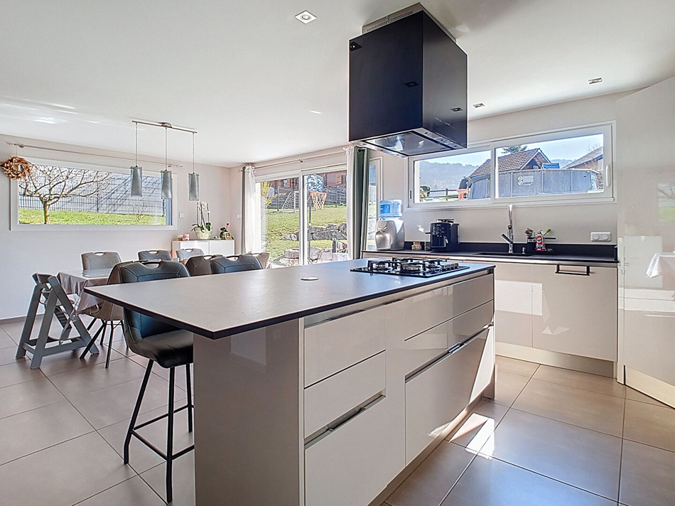 The Bons agency invites you to discover this magnificent 2016 brick home, ideally situated facing southeast on a 903 sqm plot. From the moment you enter, with its practical storage and guest WC, you'll appreciate the quality of this family home. A few steps lead to a bright and airy 44.50 sqm living area. The fully fitted and equipped open-plan kitchen, complete with a pantry, opens onto a welcoming living/dining room with underfloor heating via a heat pump. This space flows seamlessly outdoors onto a large 50 sqm terrace, fully enclosed by a retractable awning. A half-level up, privacy is paramount with a master suite featuring its own dressing room and en-suite shower room with WC. Finally, the top landing provides access to three comfortable bedrooms and a family bathroom, offering each family member their own private haven. For practical purposes, the basement houses a spacious double garage with a dedicated laundry area. In addition to its excellent overall condition, the house benefits from modern amenities: double-glazed PVC windows, Somfy electric roller shutters, fiber optic internet, and a chimney flue already installed for your future evenings by the fire. Ideally located, you will enjoy the immediate proximity of schools (nursery, primary, and Jean-Marie Molliet middle school) as well as the essential shops and services of Boëge, all accessible in just a few minutes. Key features at a glance: Living area: 129 sqm (6 rooms, 4 bedrooms). Land: 903 sqm with a 50 sqm terrace. Energy: Air-to-water heat pump (underfloor heating and hot water). Additional features: Double garage and parking. Neighborhood: Quiet, close to schools and all amenities. A rare opportunity on the market, available through the Bons agency.