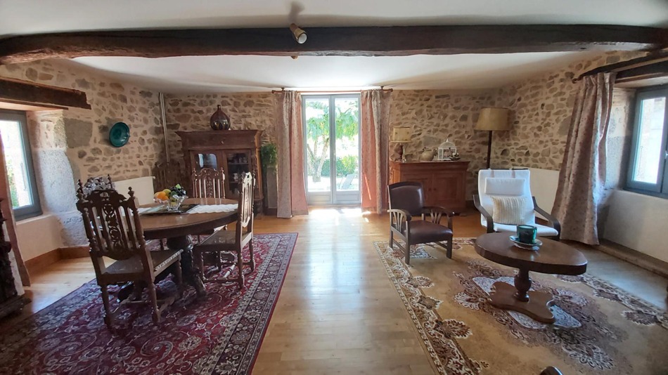Superbe maison en pierre au cœur d'un charmant village du Périgord Vert, à 10 minutes de Nontron, comprenant un vaste séjour de 46m² avec coin cuisine et cheminée, une salle à manger de 36m² donnant sur le jardin. A l'étage, palier, deux grandes chambres, salle de bains et toilettes. Jardin à l'arrière et grande dépendance à usage de garages et atelier. Maison en parfait état, pierre apparente, jardin sans vis à vis et avec barbecue !Les informations sur les risques auxquels ce bien est exposé sont disponibles sur le site Géorisques: www.georisques.gouv.fr