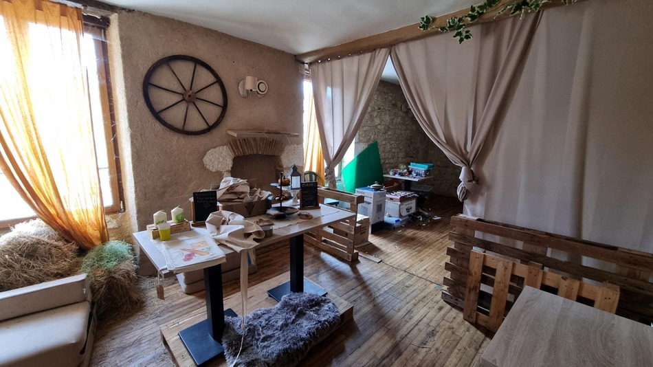 Immeuble comprenant au rez de chaussée un local commercial, cuisine professionnelle, à l'étage deux pièces et sanitaires (toilettes et lave mains). Grenier aménageable.Ancienne pizzeria et crêperie. Centre bourg.Les informations sur les risques auxquels ce bien est exposé sont disponibles sur le site Géorisques: www.georisques.gouv.fr