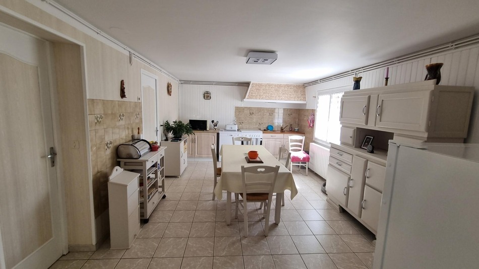 Maison rénovée, comprenant au rez de chaussée un premier logement avec entrée, séjour et coin cuisine, deux chambres, salle d'eau et toilettes, A l'étage, salon, cuisine aménagée, salle à manger, deux chambres, salle de bains et toilettes. Grenier aménageable.Attenant un garage de 30m² avec coin cuisine, chaufferie et remise. Séparé un garage de 20m². Le tout sur 1 156m² de terrain clos. En parfait état, pompe à chaleur, performance énergétique rare. Forage sur le terrain eau à volonté. Les informations sur les risques auxquels ce bien est exposé sont disponibles sur le site Géorisques : www.georisques.gouv.fr