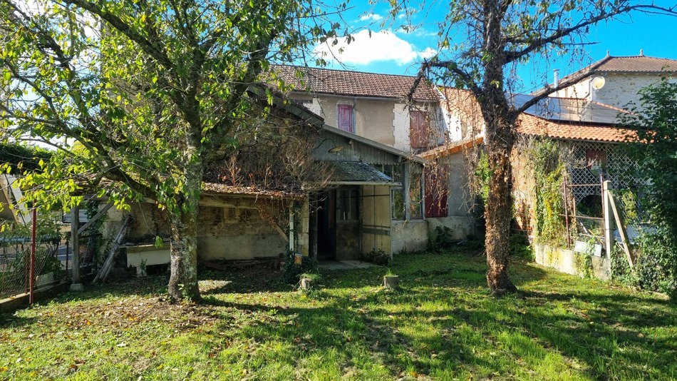 Maison de bourg à rénover comprenant au rez de chaussée, entrée, deux pièces, cuisine, cave, atelier,toilettes et chaufferie. A l'étage, palier, 4 pièces, salle de bains et toilettes. Grenier. Jardin à l'arrière bordé par la Dronne. Les informations sur les risques auxquels ce bien est exposé sont disponibles sur le site Géorisques : www.georisques.gouv.fr