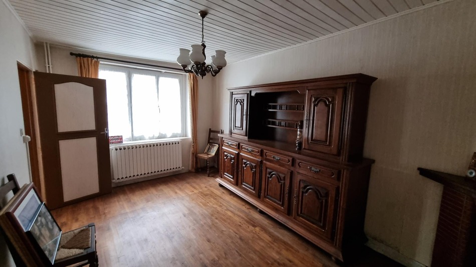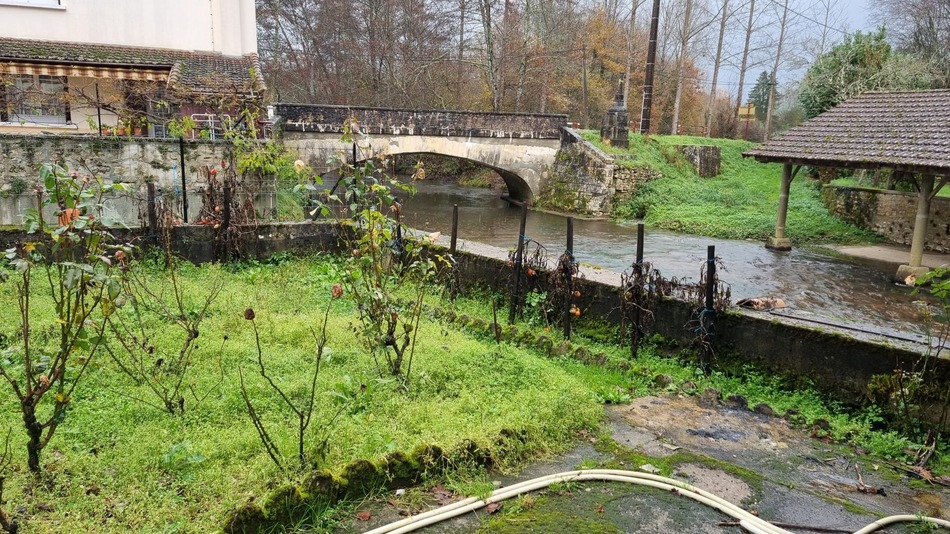 Maison de village comprenant, au rez-de-chaussée, hall d'entrée, cuisine, séjour et toilettes. A l'étage : palier, deux chambres, couloir, salle de bains avec toilettes. Petite sortie sur l'arrière. En face, dépendance à usage de chaufferie avec jardin d'environ 100m² donnant directement sur la Dronne. Autre ancienne habitation séparée avec deux pièces et grenier. Garage double séparé. A moderniser. L'information sur les risques auxquels ce bien est exposé est disponible sur le site des Géorisques : www.georisques.gouv.fr