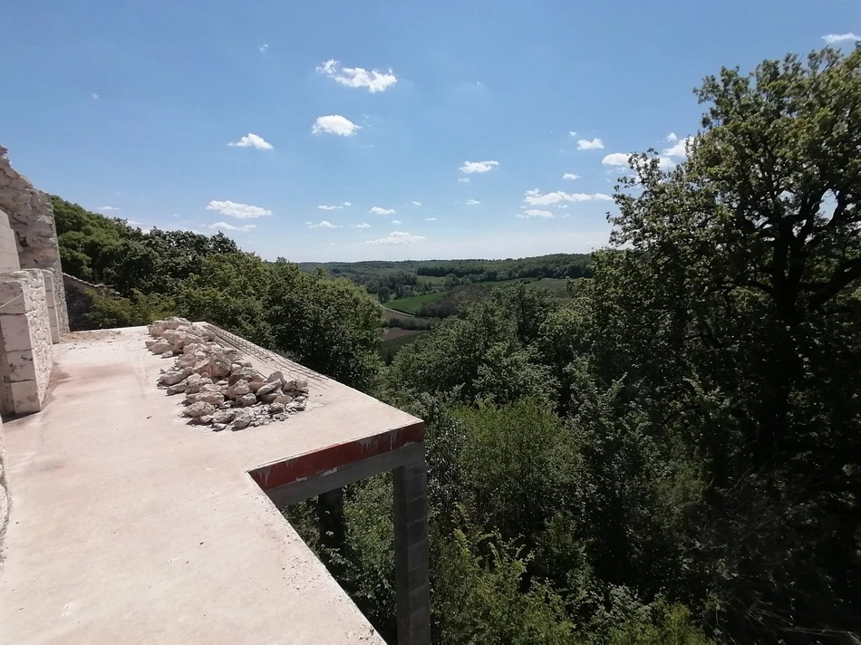 This property on a plateau overlooking the valley offers an exceptional site in a quiet location 5 mins from all amenities. The house is under construction, with its terrace suspended in the valley, it could become an extraordinary project, with the feeling of being at the end of the road assured. A house on plan ground floor, including: kitchen lounge / dining room, entrance hall, bathroom, toilet, laundry room, cellar, technical room, terrace facing south. It is equipped with a living room, with dining room, with a fitted separate kitchen, with a balcony, with a terrace and with a cellar. The whole on a plot of 34958 m², planted with hundred-year-old oak trees, a stone building of about 50 m² in the course of restoration, a barn of about 100 m². Miscellaneous: water supply, electricity meter.