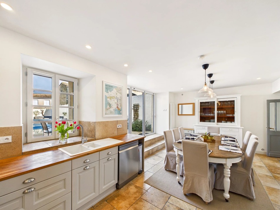 This stunning five-bedroom, four-bathroom village residence has been beautifully renovated to combine contemporary comfort with timeless French charm. Completed in 2021, the renovation has delivered both style and practicality, and the property has since been used as a summer rental. Electric heating, air conditioning and a welcoming log-burning stove ensure year-round comfort and appeal.