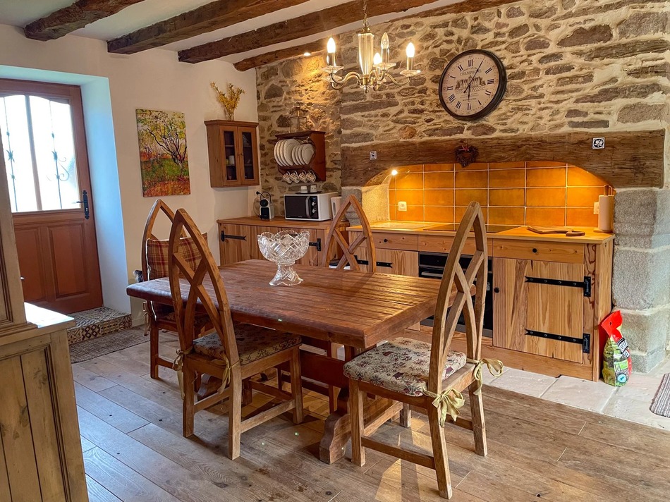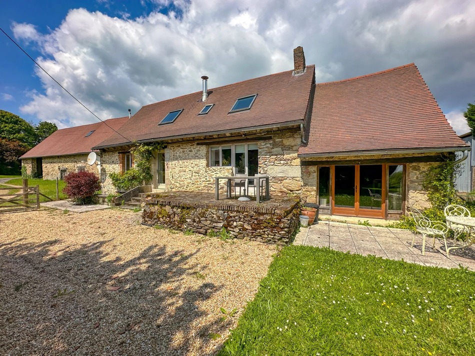 EXCLUSIVE TO ! Renovated detached stone cottage with a lovely contemporary feel. Elegant detached 2 bedroom, 2 bathroom rural property, has the possibility of a 3rd bedroom above the utility room. Adjacent is a 200 m² barn, hanger, and some stone animal buildings behind the house. Set in 1.8 acres of flat land on the edge of the Parc Naturel Régional Périgord-Limousin. There is also a lockable storage facility at the end of the hanger, perfect for drying/storing wood.