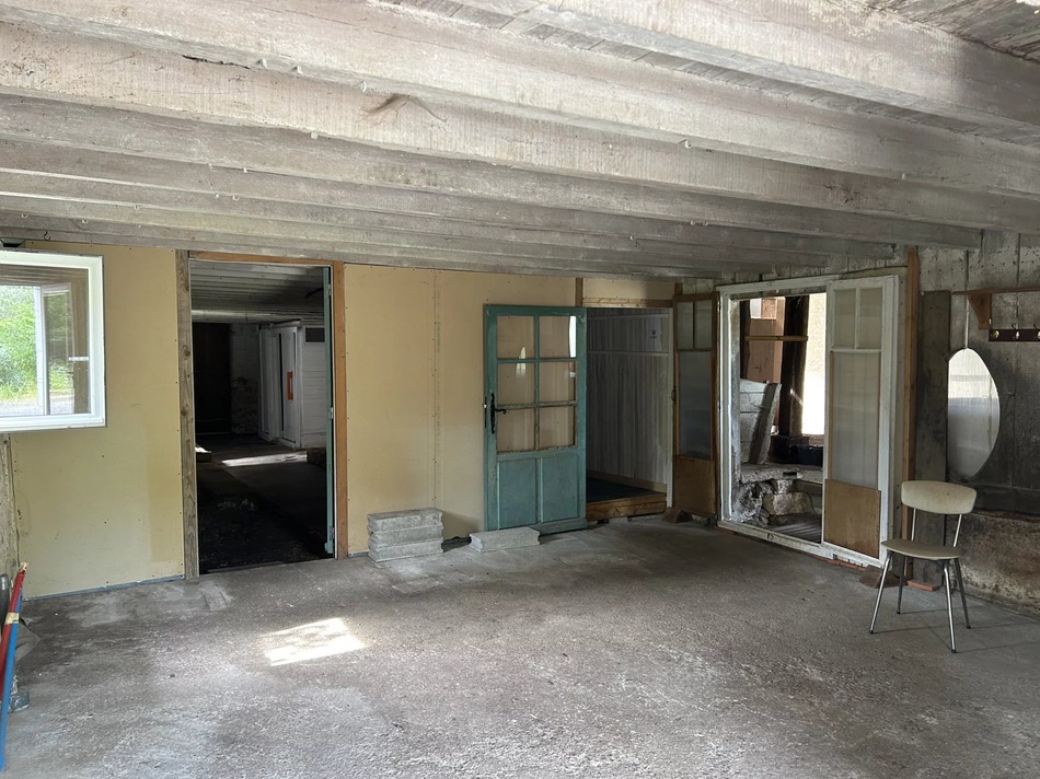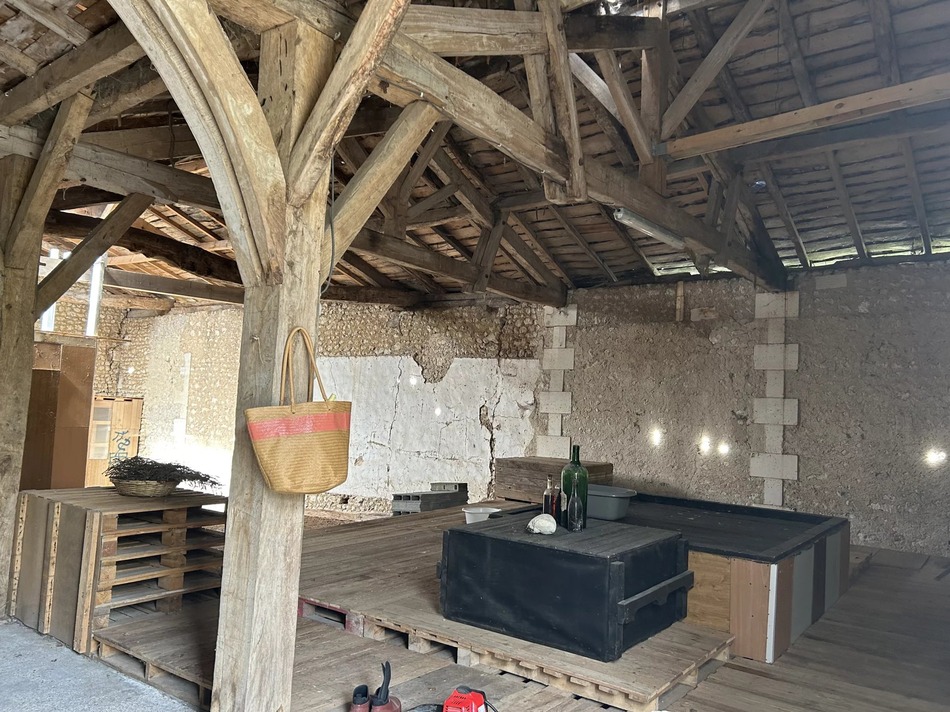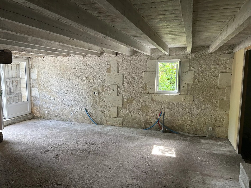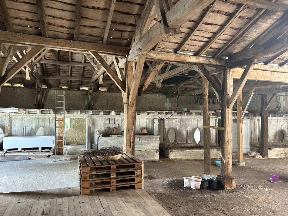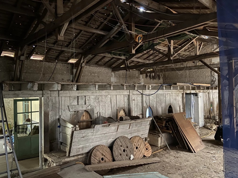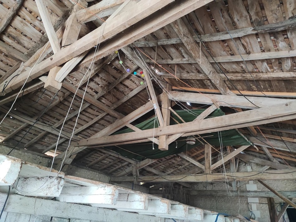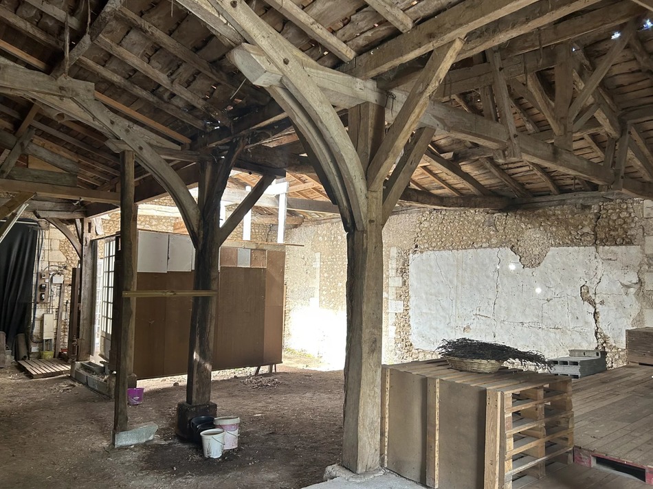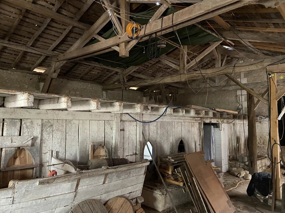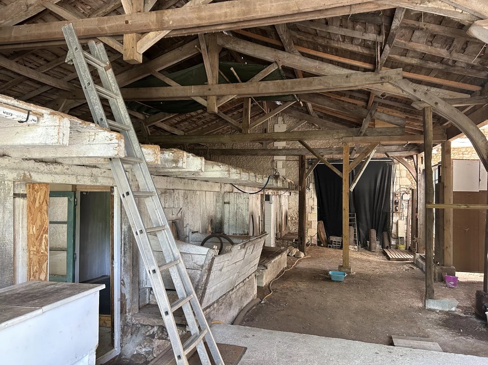 This beautiful stone barn with vaulted ceiling and impressive wooden roof structure presents itself as an open canvas for different projects. It sits on almost 2 acres of mature garden, orchard and wood, in a peaceful hamlet overlooking the village castle.