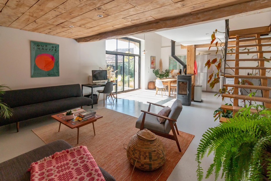 The two parts of the house are joined by common access to the downstairs laundry room. The property benefits from a mix of wood-burning stoves and electric radiators.