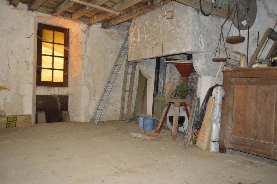 It consists of an entrance hall leading to a kitchen, dining room, shower room, toilet, large living room with open fireplace and a fitted kitchen. On the first floor, a landing leads to two bedrooms and a bathroom/WC, corridor leading to two other bedrooms with cupboard and mezzanine, which gives access to the living room. Attic.