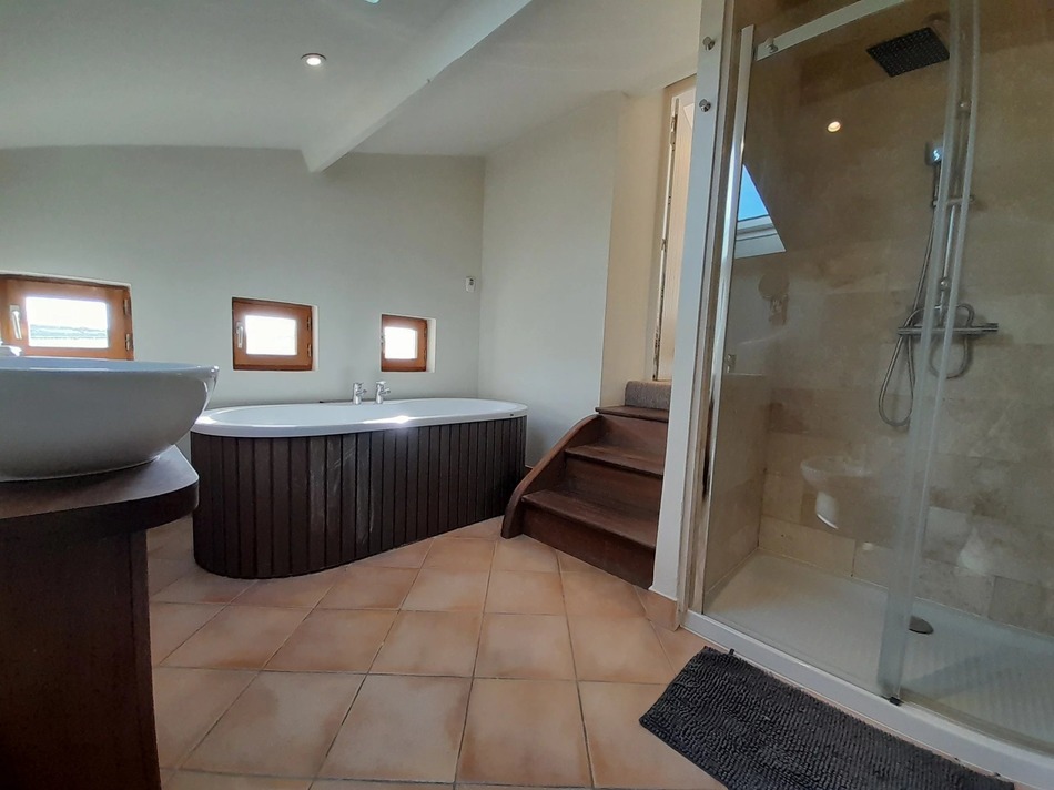 The main house is situated independently at the far end of the grounds with open views over the rolling countryside. The accommodation is on 2 floors and offers 3 bedrooms/2 bathrooms, a spacious kitchen/living room, underfloor heating and a large terrace next to the private pool.