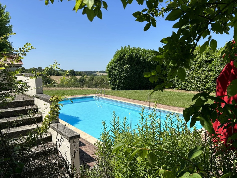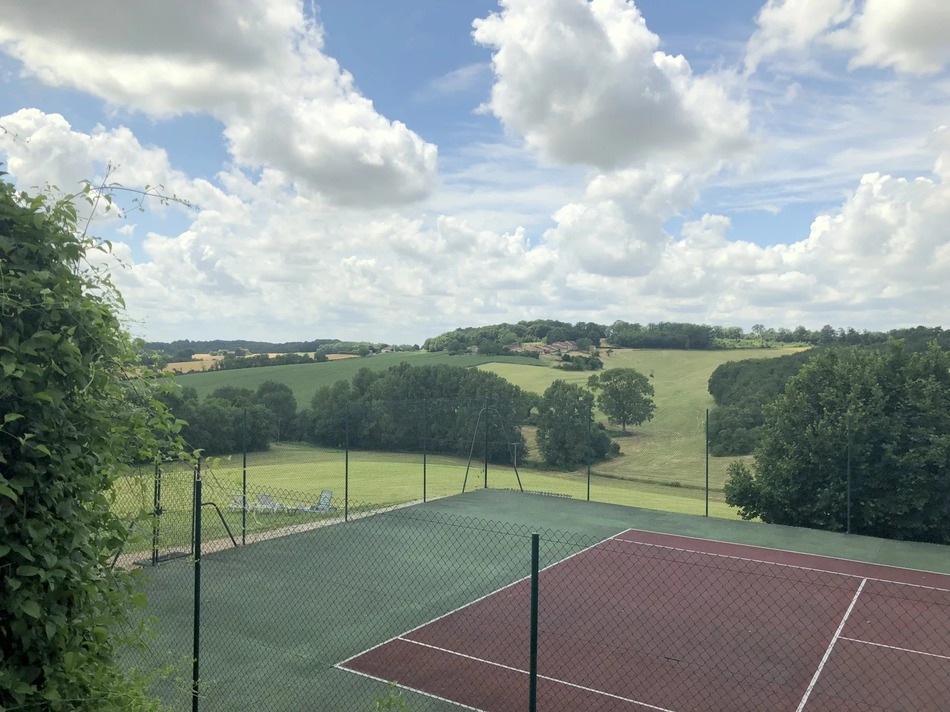 There is also a guest barbeque area with steps down to the pool and on a lower level, being screened by laurel hedging, is the tennis court which looks out across the valley and takes in the beautiful view.