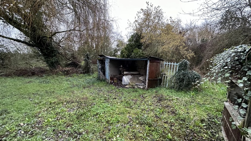 This semi-detached property sits in a generous but rather overgrown garden with an independent water source - the house itself is on mains drinking water but will need a new septic tank for drainage. The current accommodation is on one level and includes a large sitting room, kitchen, bathroom, office and bedroom. The large attic overhead could, with permissions give you substantial additional living space. Storage is not a problem - there are several garden sheds and a large barn/garage as well.
