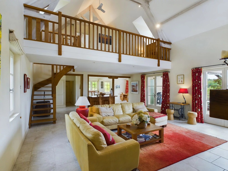 This individual house of 210m2, is one of the most attractive on the Chateau des Vigiers Golf Estate. It was designed by a local architect in Perigordine style and was completed in 2007 for the current owners. The house nestles in a plum orchard and faces SSW, overlooking the 4th fairway of Les Vignes golf course. The open plan ground floor area is made up of a large vaulted double height sitting area, with a wood burning stove, kitchen and dining area. The house has underfloor electric heating throughout. Also on the ground floor are 2 en-suite bedrooms. On the first floor is the en suite master bedroom with two balconies, air conditioning and a mezzanine study/4th bedroom. There is air source heating for the pool and hot water. Outside the kitchen is an east facing terrace, and a very large south west facing terrace surrounding the 12 x 5 metre heated pool which is fitted with an electric pool cover. There is an outside shaded garden area, with seating adjoining the pool house. The orchard garden is equipped with a grass mowing robot.
