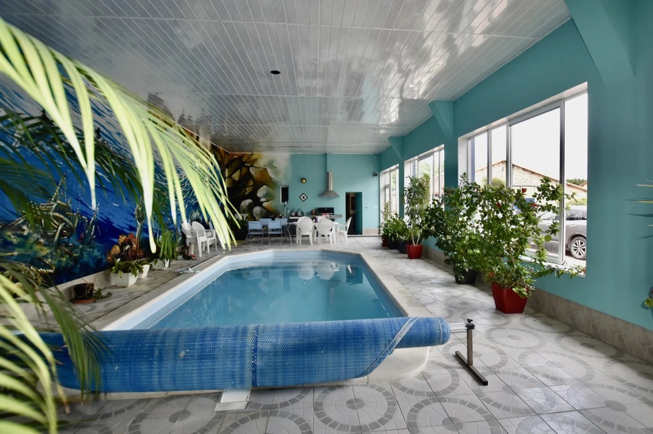This superb traditional Longère is a very substantial property offering 340M2 of 4 bedroomed accommodation in the main house plus two further cottages, a large barn and other outbuildings and sits in level pasture and paddocks of just over 7ha with man-made lake. The stunning property has been sympathetically renovated and updated retaining main original features whilst adding the luxury of an indoor heated swimming pool couple with jacuzzi as well as double glazing and central heating powered by an energy efficient heat pump. The property is entered via an electric gate which opens to a large gravelled forecourt leading round to the front of the house with its large paved terrace with stone balustrade and covered Pergola just perfect for alfresco entertaining and dining.