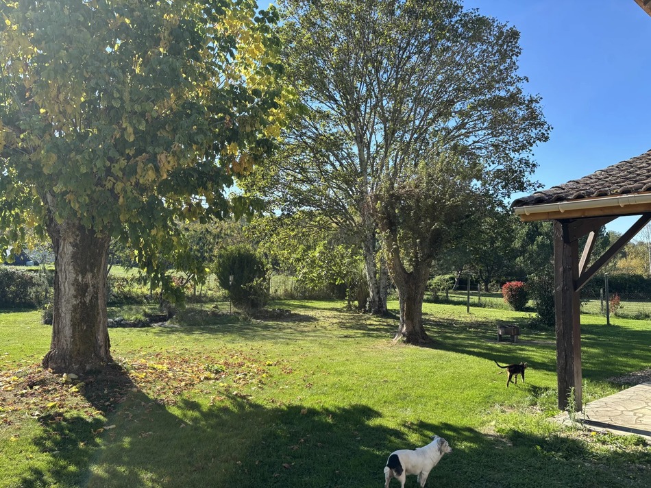At a lower level the other part of the house with a large sitting room with terracotta tiles and beamed ceiling. Fireplace. Staircase going to two upstairs bedrooms and a large bathroom. Centrally heated. Fibre internet. Pretty garden and land of around 5000 m² around the property.