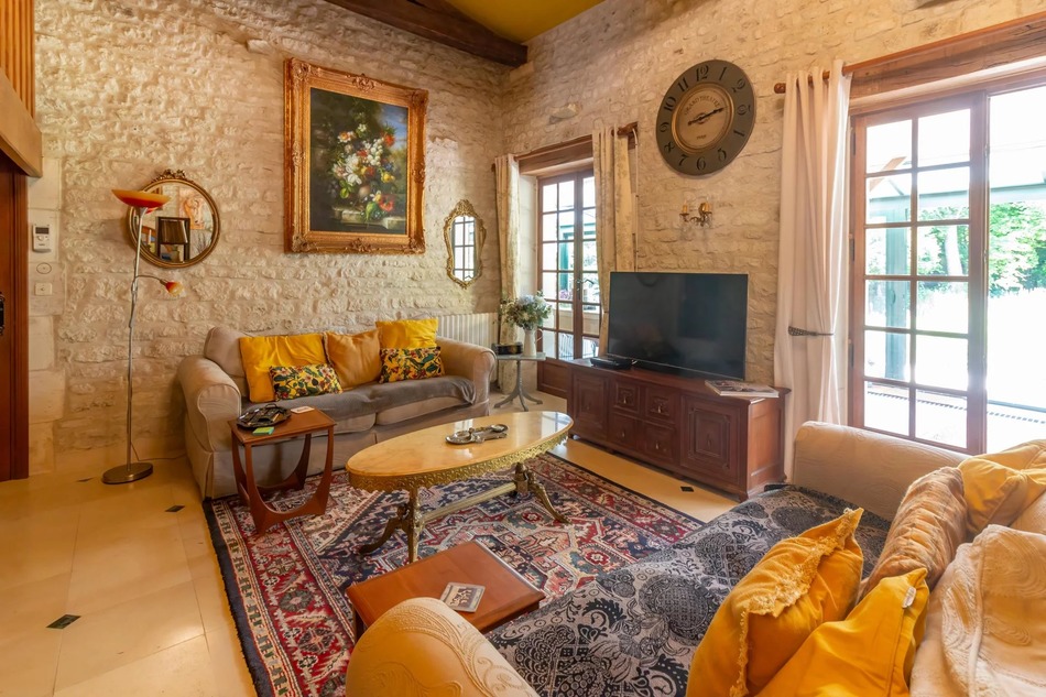 Set over two floors, the house has plenty of habitable space and also offers potential for further development (subject to the necessary permissions). On the ground floor the entrance provides access to a large living room which in turn opens to a very generous conservatory running along the back of the house. Off the living room is a vaulted wine cellar. There is a second living room / snug / office as well as a very spacious kitchen - with plenty of space for a dining table. Off the kitchen is a second conservatory, a laundry room and a large entertainment room (complete with Cognac still). On the ground floor there is also a WC and a bedroom suite comprising bedroom, bathroom and dressing room.