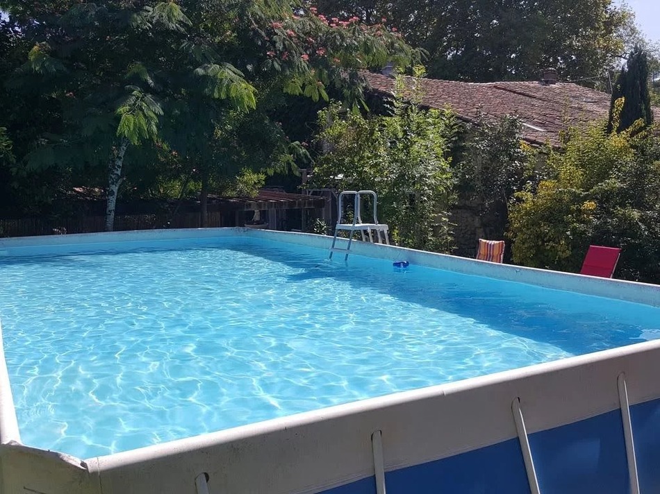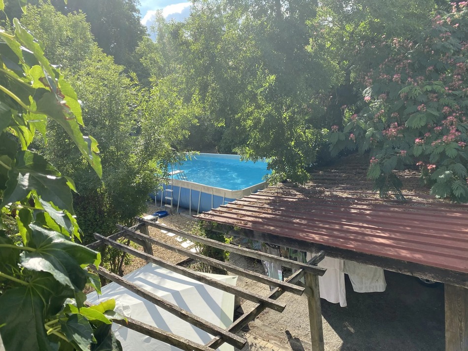 Semi-detached property comprising kitchen, double-height sitting-dining room, utility room, ground floor WC and cellar. To the first floor are 2 good-sized bedrooms, bathroom with WC and potential to create a 3rd bedroom on the mezzanine landing. Outside is a car port, terrace, garden of approx 562m² and above ground pool. Some updating required.