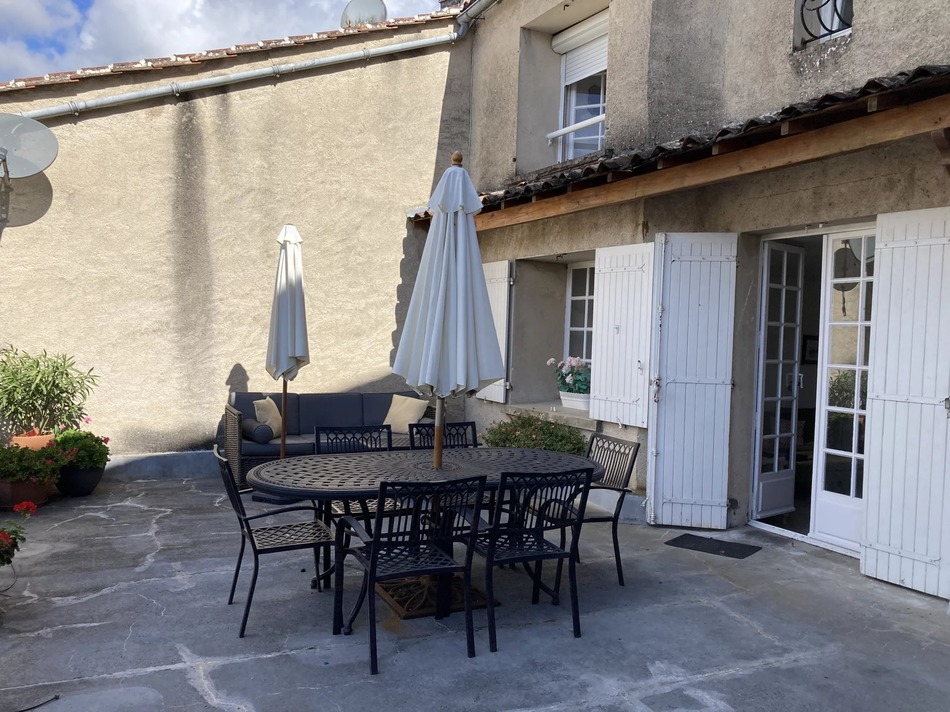 Set in the heart of Chateauneuf-sur-Charente, this spacious townhouse has a large, raised terrace with rooftop views.