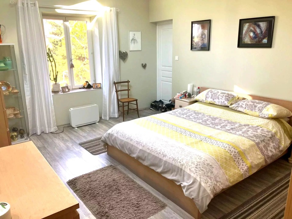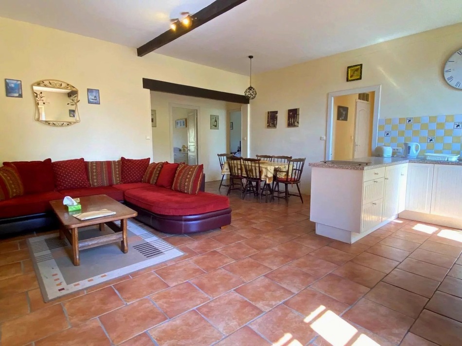 Minervois cottage (90m2): Upper level - 2 bedrooms, 1 bathroom and separate WC. Lower level - 3rd bedroom and open plan kitchen/diner/lounge area.