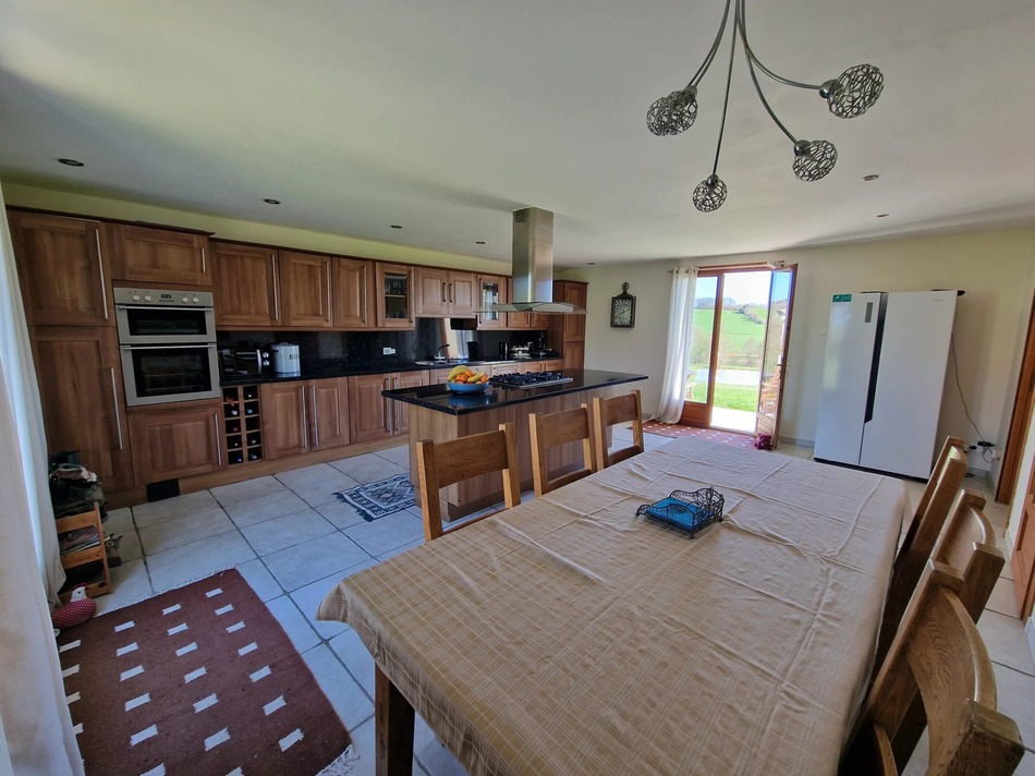 The attached guest house, while connected to the main property, is entirely independent with its own private entrance and terrace. It includes a fitted kitchen with dining space, a separate lounge, one bedroom, and a shower room (possible gite - subject to necessary permissions).