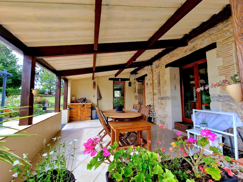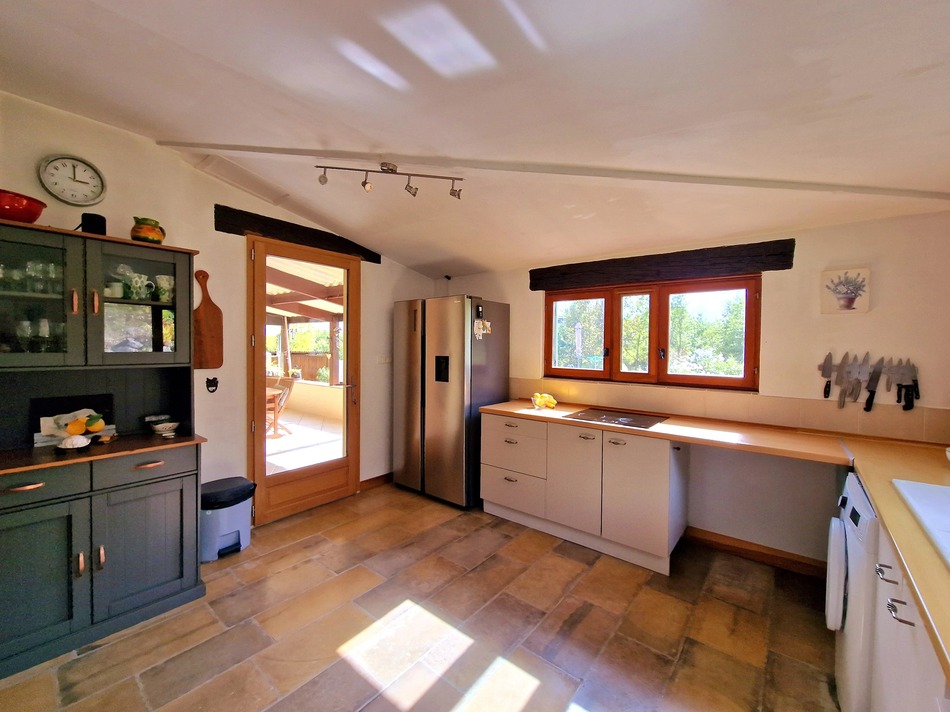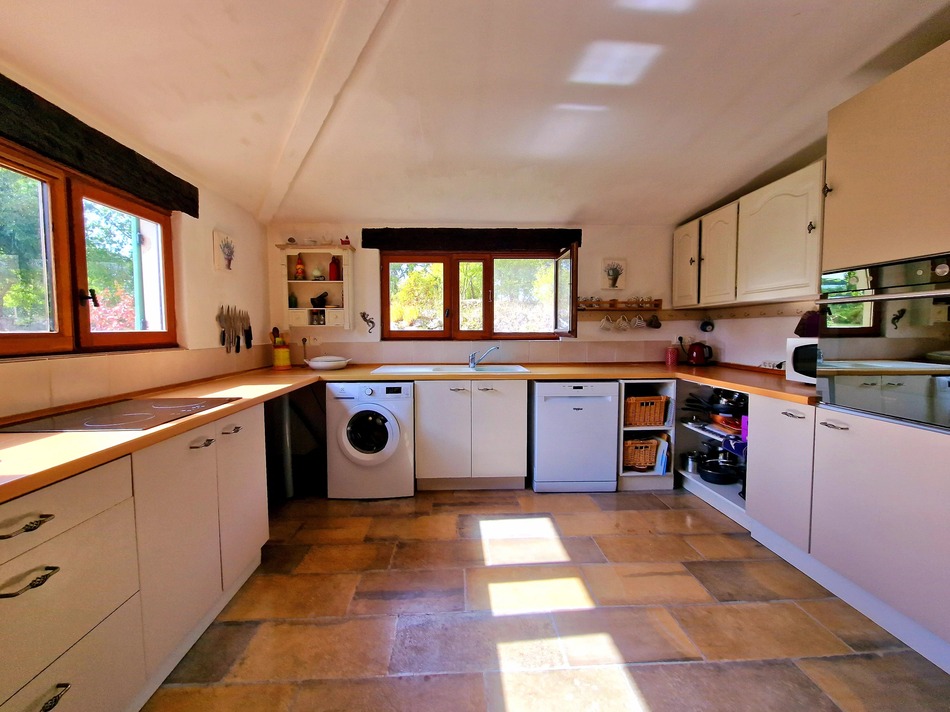 The property is double glazed throughout with a fantastic wood burning stove as the focal point in the living room. There is a large modern kitchen with induction hob and dual aspect windows overlooking the established garden and views beyond, as well as a glass door out to the covered terrace - perfect for al fresco dining and enjoying the gorgeous Dordogne sunsets!