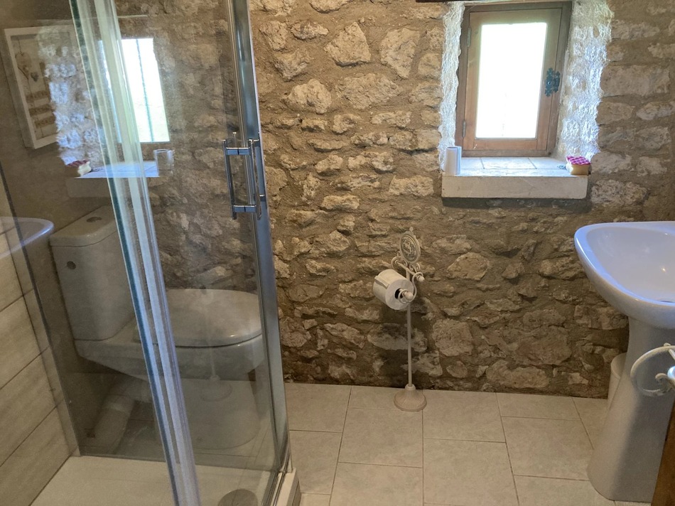 A charming stone house divided in main living space and a separate part currently used as a 'guest house'. 2 reception rooms, two kitchens, 6 bedrooms, one with an en suite bathroom, another bathroom and two shower rooms ,a study/bedroom, on two levels. A conservatory overlooking the pool area and the large plot of land. Outbuilding , partly for storage and the main space with a kitchen converted to professional standards, a dining area and a WC. This building can be made suitable for a separate apartment depending on permission.