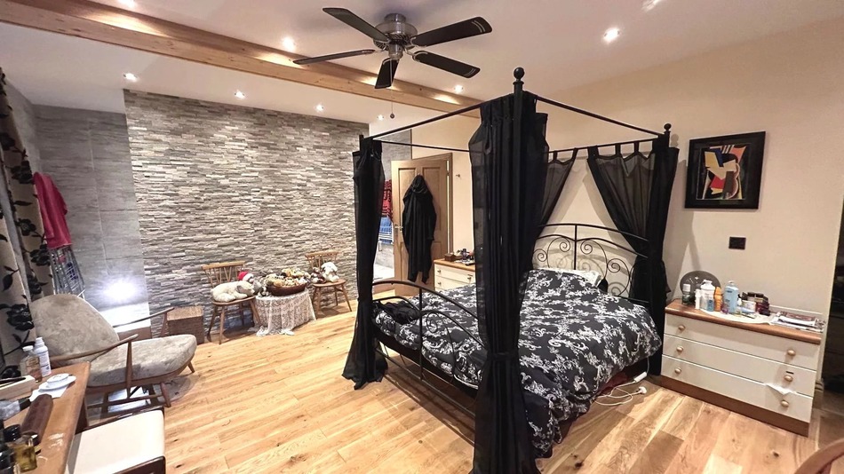 sink and enclosed WC and bidet. There is also a fabulous walk-in wardrobe with ample storage. 2 further double bedrooms, also fully carpeted, an extremely large 3rd bedroom/games room which could be converted to make 2 rooms if desired and a further smaller room is a good sized single bedroom/storage room/office completes the first floor accommodation.