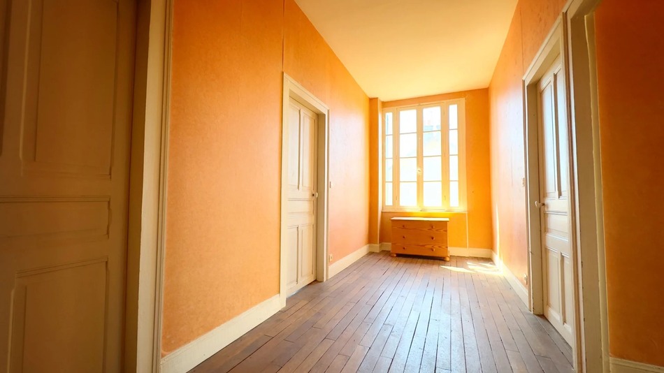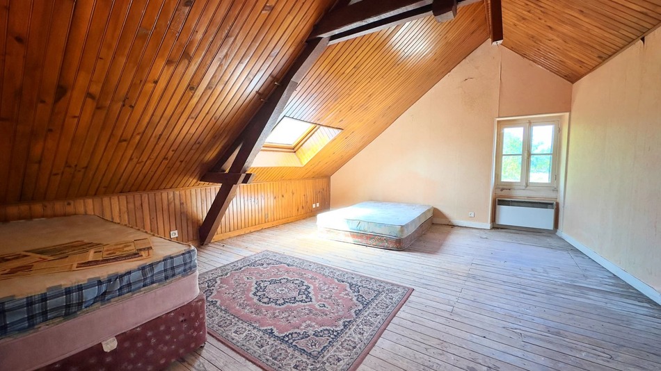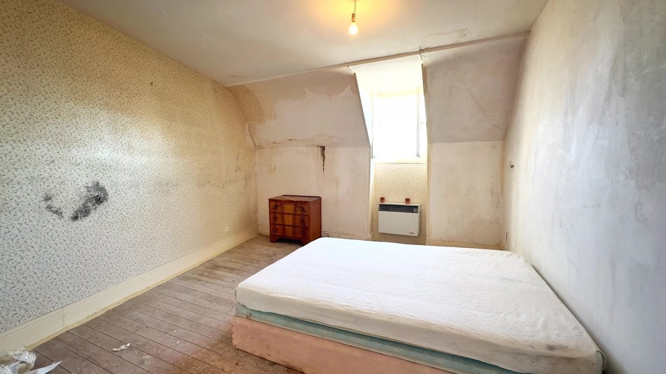 On the first floor, there are two bedrooms, a bathroom, a WC and a dressing area, along with doors leading onto the roof of the extension - a fabulous terrace in its raw state.