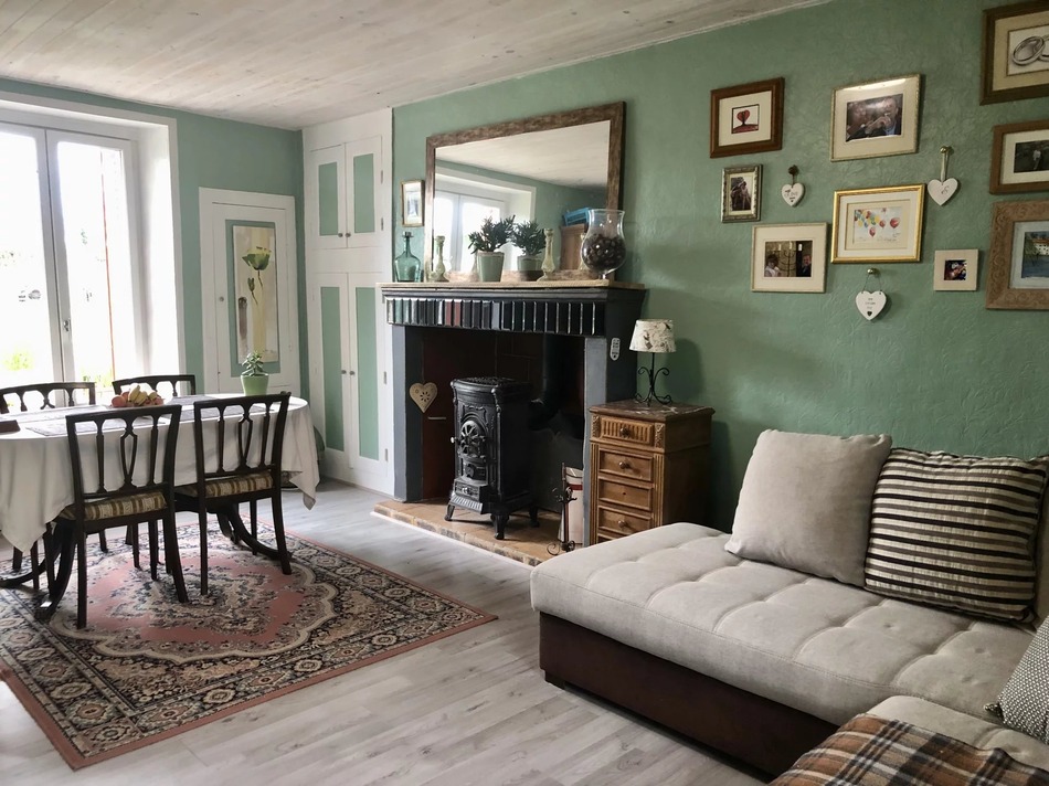 This great home located in a hamlet is a private retreat. You enter the home through a lovely bright conservatory into a huge kitchen/diner perfect for entertaining. It has a pellet burner and has double glazed wooden windows throughout. There's a great living room with wood burner and another sitting room or could be downstairs bedroom as it has an adjacent full bathroom with WC.