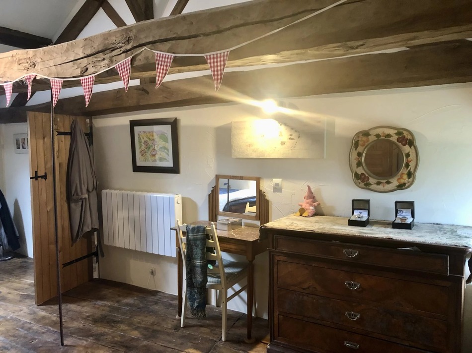 The garden is delightful with a lush lawn, shrubs, flower and vegetable beds. There is also a large attached meadow to the rear of the property.