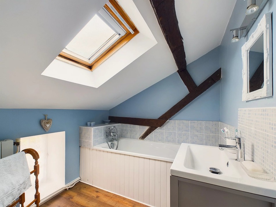 On the first floor you’ll find One single bedroom and two double bedrooms, each with built-in wardrobes. The main house is heated by central oil fuelled heating.